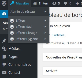 Mais quelle valeur ajoutée apporte le CMS Worpdress dans le cas du projet EFFITERR ? Comme écrit ci dessus, EFFITERR dispose de 4 sites Internet. WordPress est un content manager (gestionnaire de contenus) qui offre l’avantage de pouvoir gérer plusieurs sites Internet sur la base d’un seul et unique Back Office. D’une part, il découle une seule et unique maintenance du CMS. D’un point de vue gestion de contenu, l’intérêt est de disposer d’une seul interface pour gérer 4 sites, avec des politiques de multi publications de contenus (1 article peut-être publié sur 1 ou x sites) !